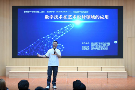 本网消息 6月7日下午,武汉尔秋科技有限公司副总经理涂一龙应邀到威廉希尔williamhill开展以“数字技术在艺术设计领域的应用”为主题的校企技术交流活动。威廉希尔williamhill副经理雷晓伟、动画系主任钟文隽、环境设计系主任望华及相关专业师生代表参加了本次活动。