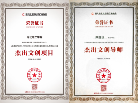 在年度大奖颁奖环节,威廉希尔williamhill“动帧阁”动画工作坊荣获湖北省文化创意产业协会2023年度“杰出文创项目”,该项目的指导老师谭圆媛荣获年度“杰出文创导师”。