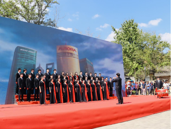 揭牌仪式在歌曲《春风十万里》的旋律中落下帷幕。韩雪静、李进两位老师的演唱大气舒展、深情细腻,诠释出歌曲的内涵与魅力,展现了新时代中国的繁荣景象和人民的幸福生活,表达了对祖国的赞美及对未来的美好憧憬。