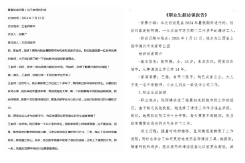 公司有493名员工参与了此项活动,员工们结合自己未来职业目标,访谈一位职业生涯人物,从而了解某一职业的工作环境、岗位职责、从业任职能力、素质要求、未来职业发展路径等。通过访谈,同学们能够直接了解不同职业领域的实际工作内容、工作环境、所需技能、发展前景等。这种第一手的信息比任何教科书或网络资料都更加生动和具体,有助于打破对职业的刻板印象,形成更加全面和真实的职业认知。这有助于他们更加准确地把握社会脉搏,增强自己的社会适应能力。在未来的职业生涯中,他们将能够更好地融入社会、服务社会并为社会做出贡献。例如公司同学们访问了环卫部门的清洁工人、专业教师等,还写了对应的访谈报告等。