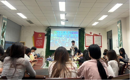 活动中,曾服役于某部队的退役士兵朱锦珅,以“迷彩青春,蜕变成长”为主题,深情讲述了自己从校园走向军营、从员工转变为军人的成长历程。他用生动的故事展现了部队生活的真实面貌:凌晨五点的紧急集合、烈日下的战术训练、执行任务时的热血时刻……字里行间透露出军人的坚韧与担当。“部队教会我的不仅是过硬的军事技能,更是‘不怕苦、不怕累’的意志品质和‘召之即来、来之能战’的使命意识。”朱锦珅鼓励在场同学,“青春有很多种样子,穿上军装的样子一定是最值得骄傲的!” 他的分享引发了同学们的强烈共鸣,现场掌声不断。