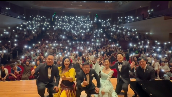 同学们被现场的气氛动容,跟随歌唱家们积极互动,高声呐喊,这种沉浸式的高水平音乐会现场气氛成为同学们心中一次永恒的记忆。