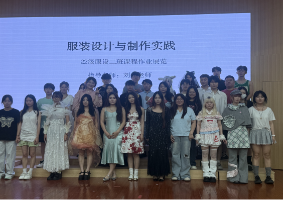 本次活动是《服装设计与制作》、《服装材料设计》等课程的重要实践环节,旨在检验员工对面料质地、特性与创意应用的专业探索,从设计构思、面料选择、版型制作到成衣展示的综合能力。舞台上,模特们身着由2022级员工们亲手设计、打版、缝制的作品款款而行。一件件精心设计的服饰,不仅体现了扎实的专业基本功,更闪耀着天马行空的创意火花。