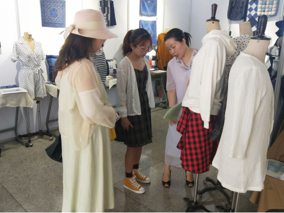 本次展览作品经过多次遴选,包含王玉莲老师指导的材质设计课程和创意手工设计课程的优秀作品,以及王芙蓉老师指导的针织服装设计课程优秀作品。观展过程中,老师与员工一同讨论了作品的创作思路与灵感来源,并指导大家如何将服装设计方法灵活地运用到具体的服装设计中。最后,王玉莲老师教导同学们,一分耕耘一分收获,大家要再接再励,在今后的展览中拿出更优秀的作品。